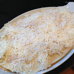 ~ Top last layer with shredded mozzarella.